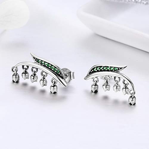 PAHALA 925 Sterling Silver Spring Green Tree Leaves Crystals Stud Earrings