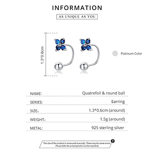 PAHALA 925 Sterling Silver Authentic Lucky Four Leaf Clover Blue Crystal Stud Earrings
