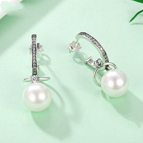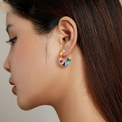 PAHALA 925 Sterling Silver Cute Rainbow Shell Pearl Hoop Earrings Stud Earrings