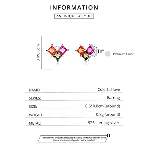 PAHALA 925 Sterling Silver Colorful Love Three-dimensional Zircons Stud Earrings
