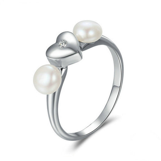 PAHALA 925 Sterling Silver Sweet Heart with Freshwater Pearl Vintage Wedding Engagement Band Ring