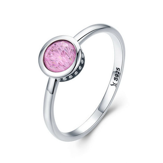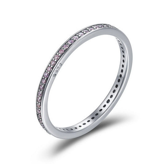 PAHALA 925 Sterling Silver Pink Crystal Round CZ Vintage Wedding Engagement Band Ring