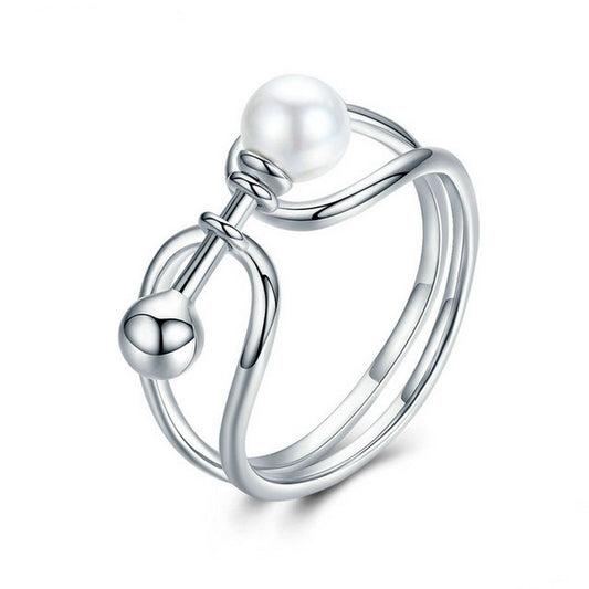 PAHALA 925 Strling Silver Freshwater Pearl Weeding Party Band Ring