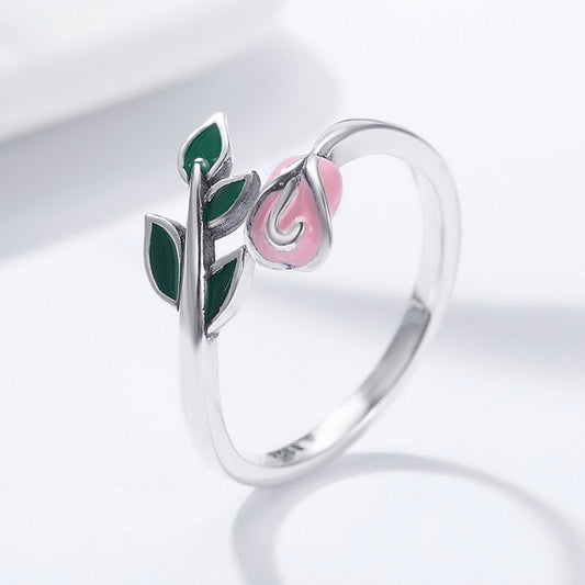 PAHALA 925 Strling Silver Rose Flower Enamel Pink Weeding Party Band Ring