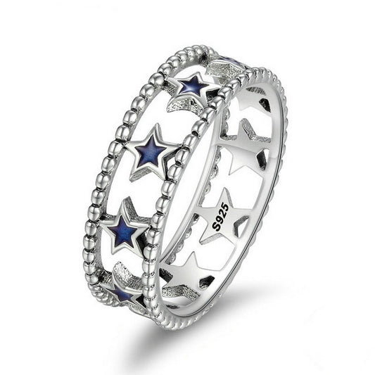 PAHALA 925 Sterling Silver Star with Blue Crystals CZ Vintage Wedding Engagement Band Ring