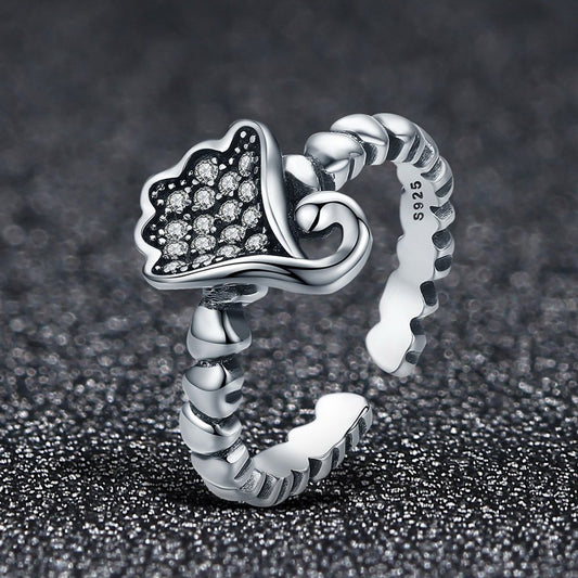 PAHALA 925 Strling Silver Chic Vines with Crystals Weeding Party Band Ring