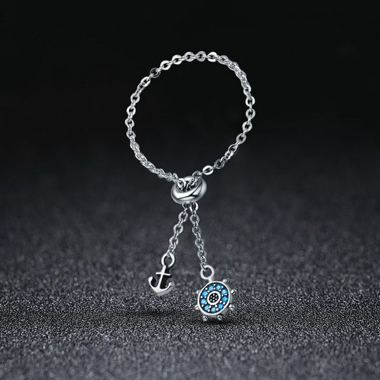 PAHALA 925 Strling Silver Anchor Rudder Chain Link Adjustable Weeding Party Ring