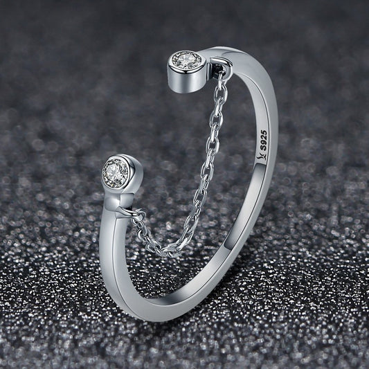 PAHALA 925 Strling Silver Tassel Adjustable with Crystals Weeding Party Band Ring