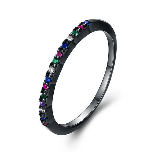 PAHALA 925 Sterling Silver Colourful Crystals Vintage Wedding Engagement Band Ring