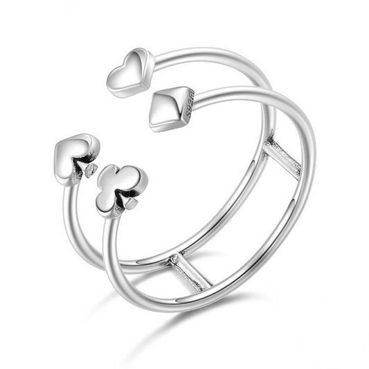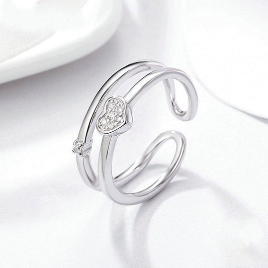 PAHALA 925 Sterling Silver Exquisite Heart with Crystals Double Layer Weeding Party Band Ring