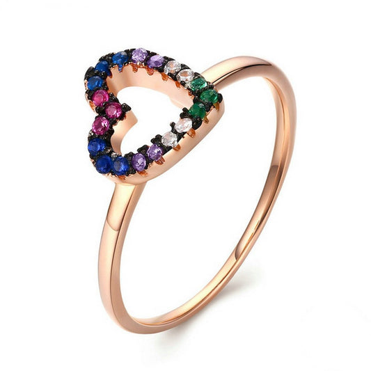 PAHALA 925 Sterling Silver Rose Gold Colourful Crystals Heart Vintage Wedding Engagement Band Ring