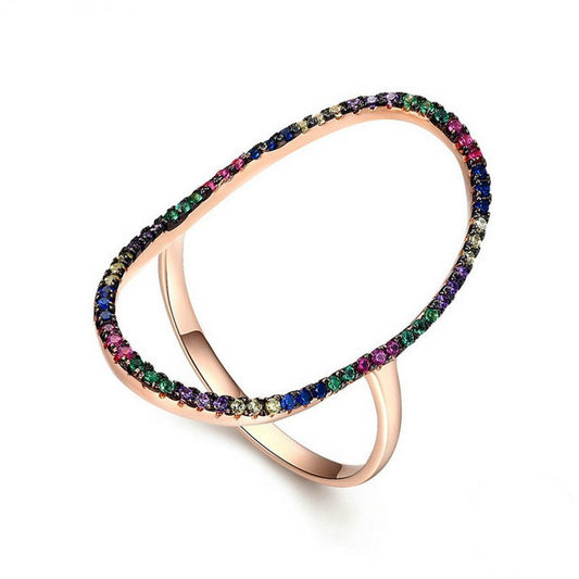PAHALA 925 Sterling Silver Rose Gold Colourful Crystals Vintage Wedding Engagement Band Ring