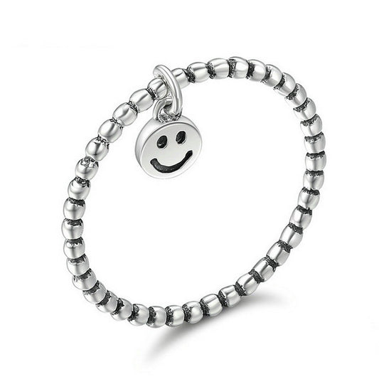 PAHALA 925 Sterling Silver Stackable Smile Face Cubic Zirconia Vintage Wedding Engagement Band Ring