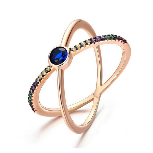 PAHALA 925 Sterling Silver Rose Gold Colourful Crystals Galaxy Vintage Wedding Engagement Band Ring