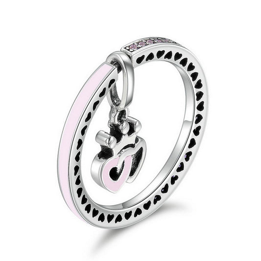 PAHALA 925 Sterling Silver Heart with Crystals Light Pink Enamel Vintage Wedding Engagement Band Ring