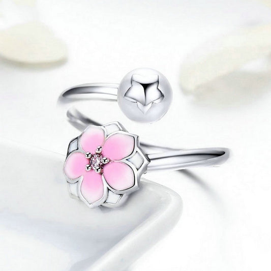 PAHALA 925 Sterling Silver Bloom with Pink Enamel Weeding Party Band Ring