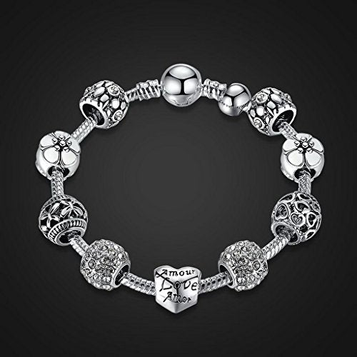 PAHALA 3 Colors Luxury Love Folwer Eurpoean Chain with Crystals Charm Bracelet Bangles