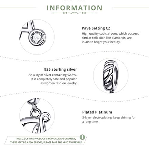 PAHALA 925 Sterling Silver 26 Handwritten Letters Alphabet with Crystal Charms Beads