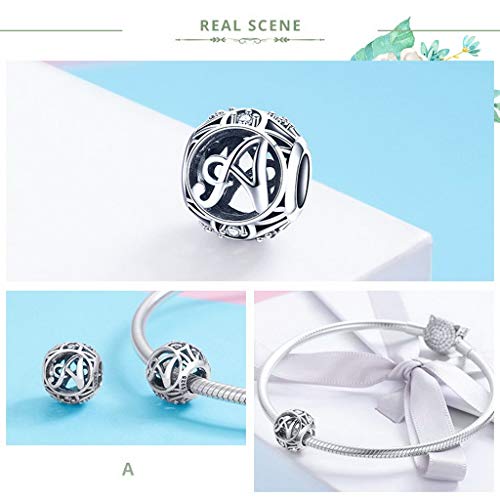PAHALA 925 Sterling Silver 26 Letters with Crystals Charm Bead