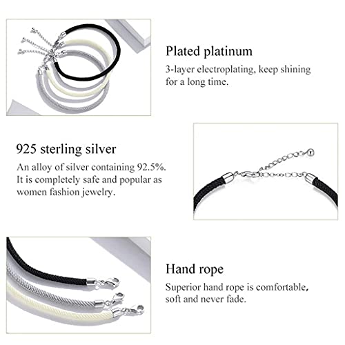 Details: Our mission is to provide the most fashionable and beautiful product for people. ❤ 【Description】The basic braided bracelet is decorated with an oxidized silver chain buckle, which is simple yet versatile, adding a fashion sense to the outfit; it is available in multiple colors and can be worn alone or stacked. ❤ 【Specification】 length:16+4.5cm; Weight: 1.3 g; Diameter of the bangle: 0.12 inch (about 3mm). ❤ 【Material】925 Sterling Silver & Hand Strap & Plated platinum, style for Nickel-free, Lead-free, Cadmium-free, Hypoallergenic. Quality Assurance, good skin-friendly, convenient and comfortable to wear, not harmful for your health. ❤ 【For Gift】 1 pcs 925 silver bracelet & 1 pcs gift box, which is an Ideal gift for teen girls, her, girlfriend, best friend, sister, daughter.