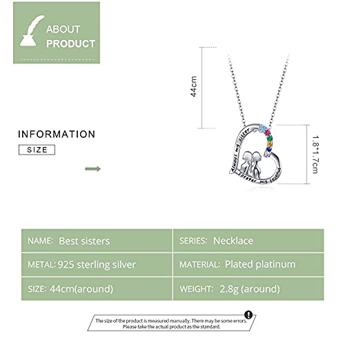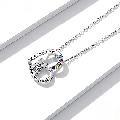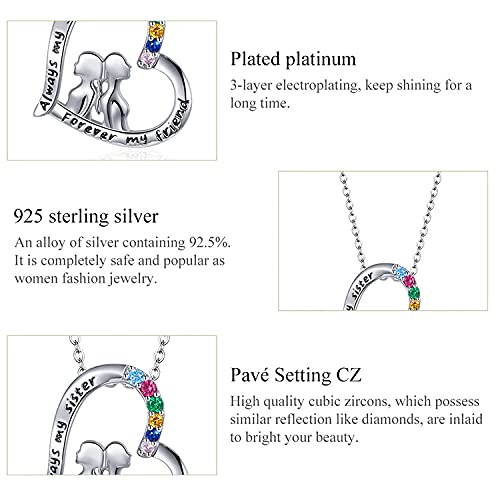 PAHALA 925 Sterling Silver Best Sisters Forever Friend Heart Rainbow Crystals Pendant Necklace