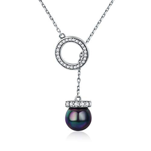 PAHALA 925 Sterling Silver Black Circle with Crystals Pendant Necklace