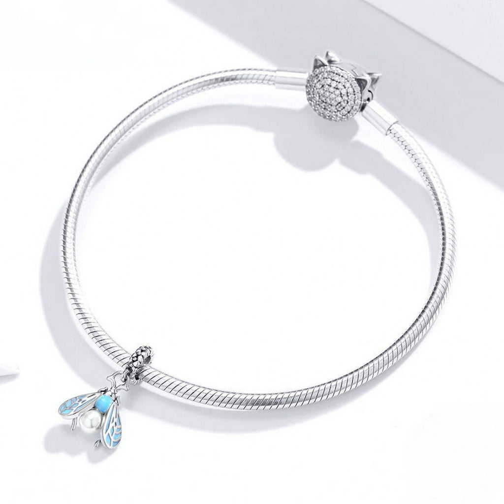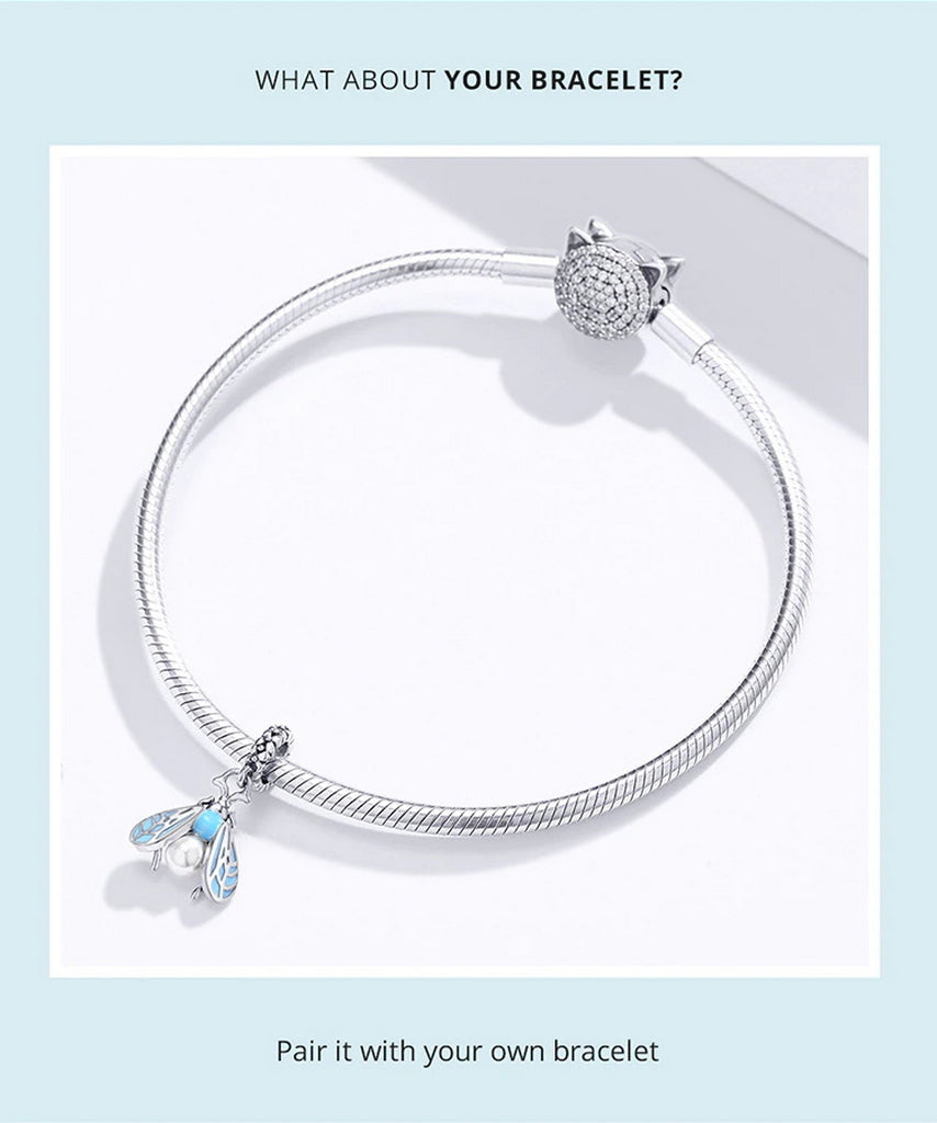 PAHALA 925 Sterling Silver Blue Enamel Moth Pendant Charm Charm Bead