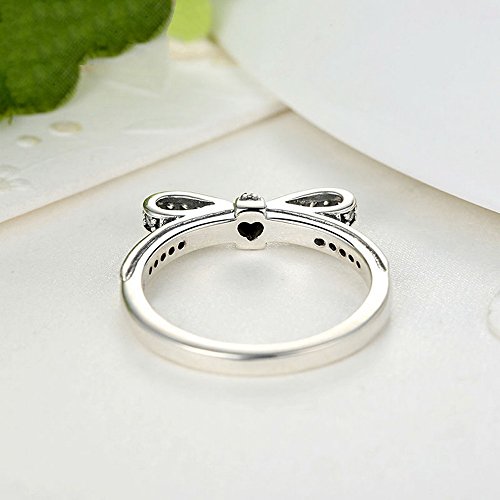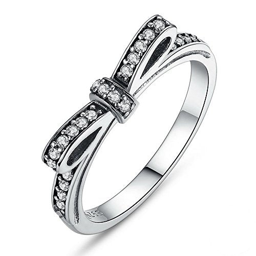 PAHALA 925 Sterling Silver Bow-Knot Cubic Zirconia Pave Wedding Engagement Band Ring