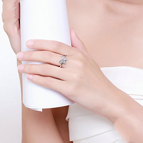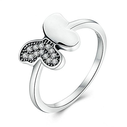 PAHALA 925 Sterling Silver Butterfly with Crystals Cubic Zirconia Vintage Wedding Engagement Band Ring