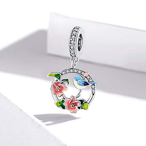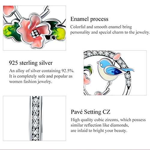 PAHALA 925 Sterling Silver Colorful Birds Flowers Leaves CZ Pendant Spring Charm Bead (Colorful Birds Flowers)