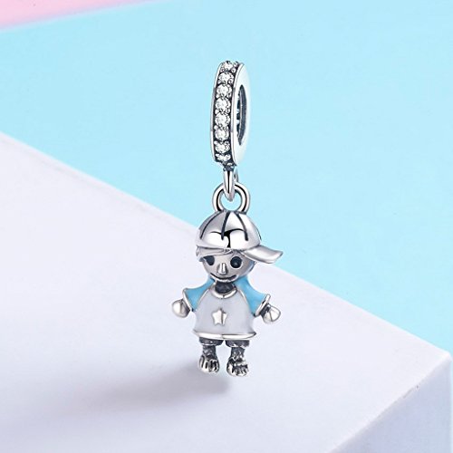 PAHALA 925 Sterling Silver Couple Little Girl Boy Lovely Enamel Crystals Charm Bead