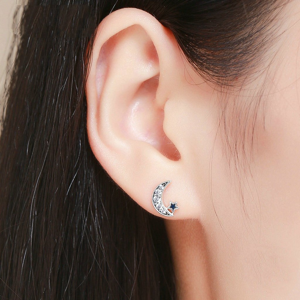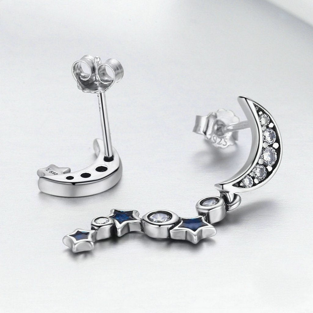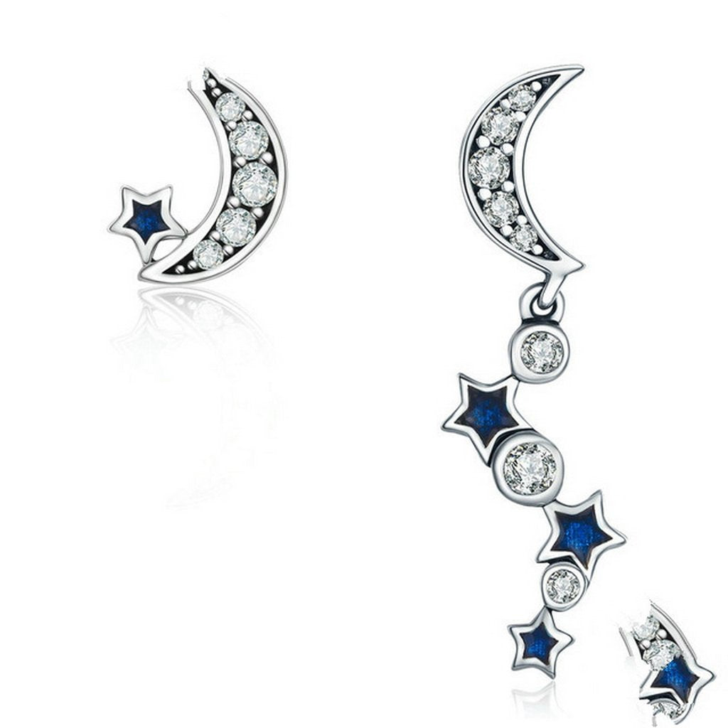PAHALA 925 Sterling Silver Crystals Moon Star Blue Party Wedding Pendant Earring