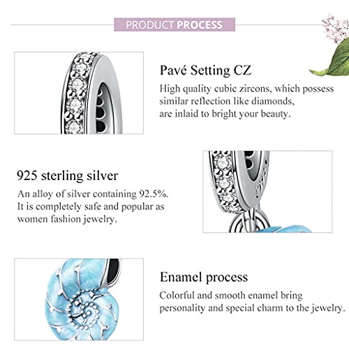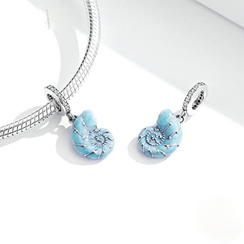 PAHALA 925 Sterling Silver Cute Blue Conch Pendant Charm Bead