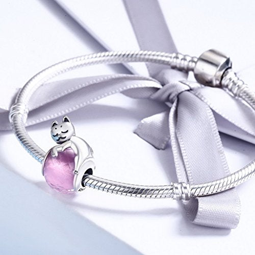 PAHALA 925 Sterling Silver Cute Cat Pussy Big Charm Bead
