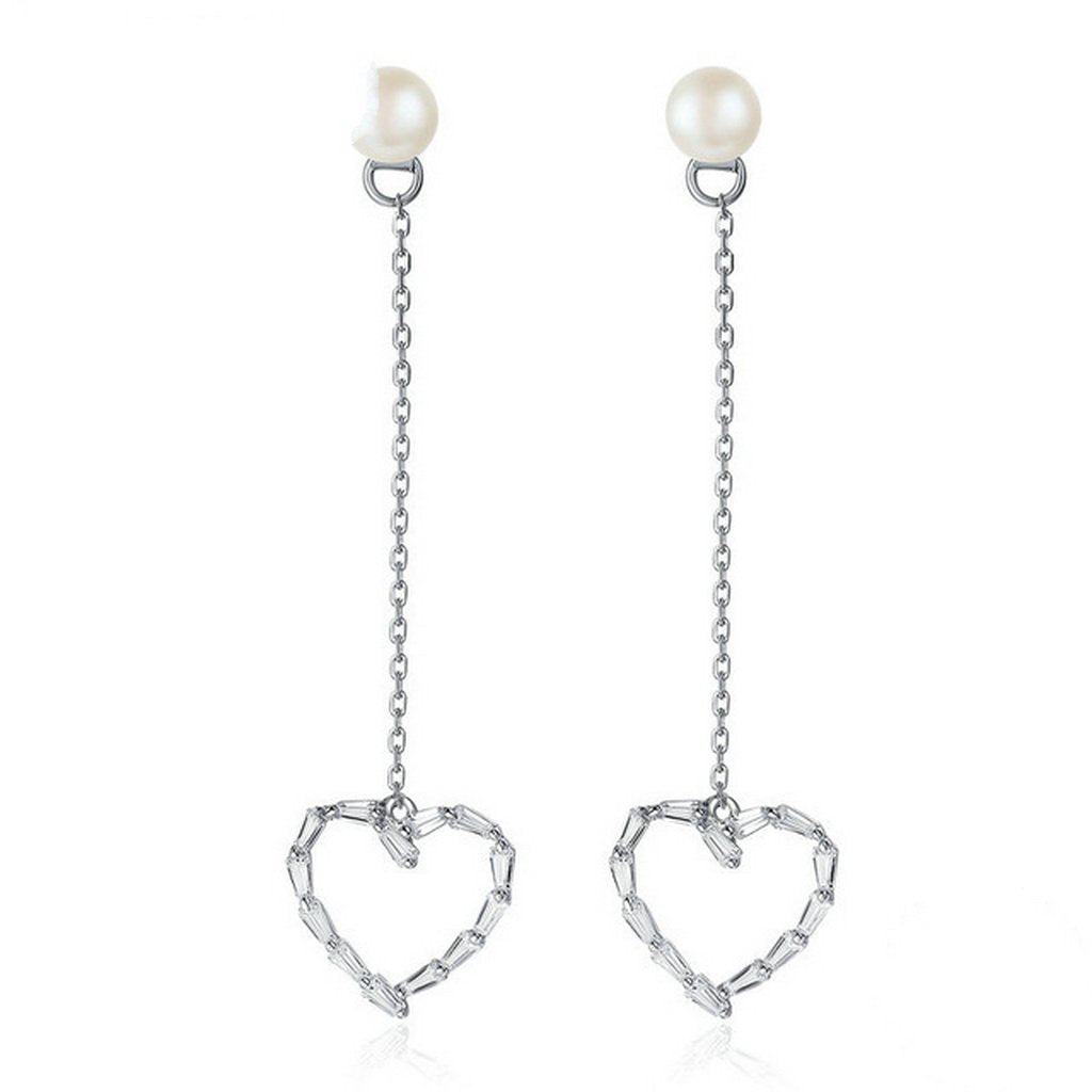 PAHALA 925 Sterling Silver Danceing Heart With FreshwaterPearl Party Wedding Drop Earrings