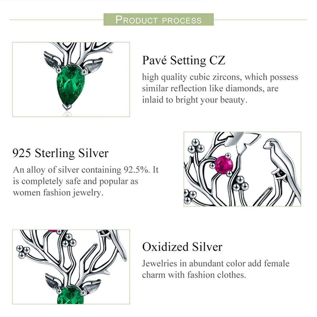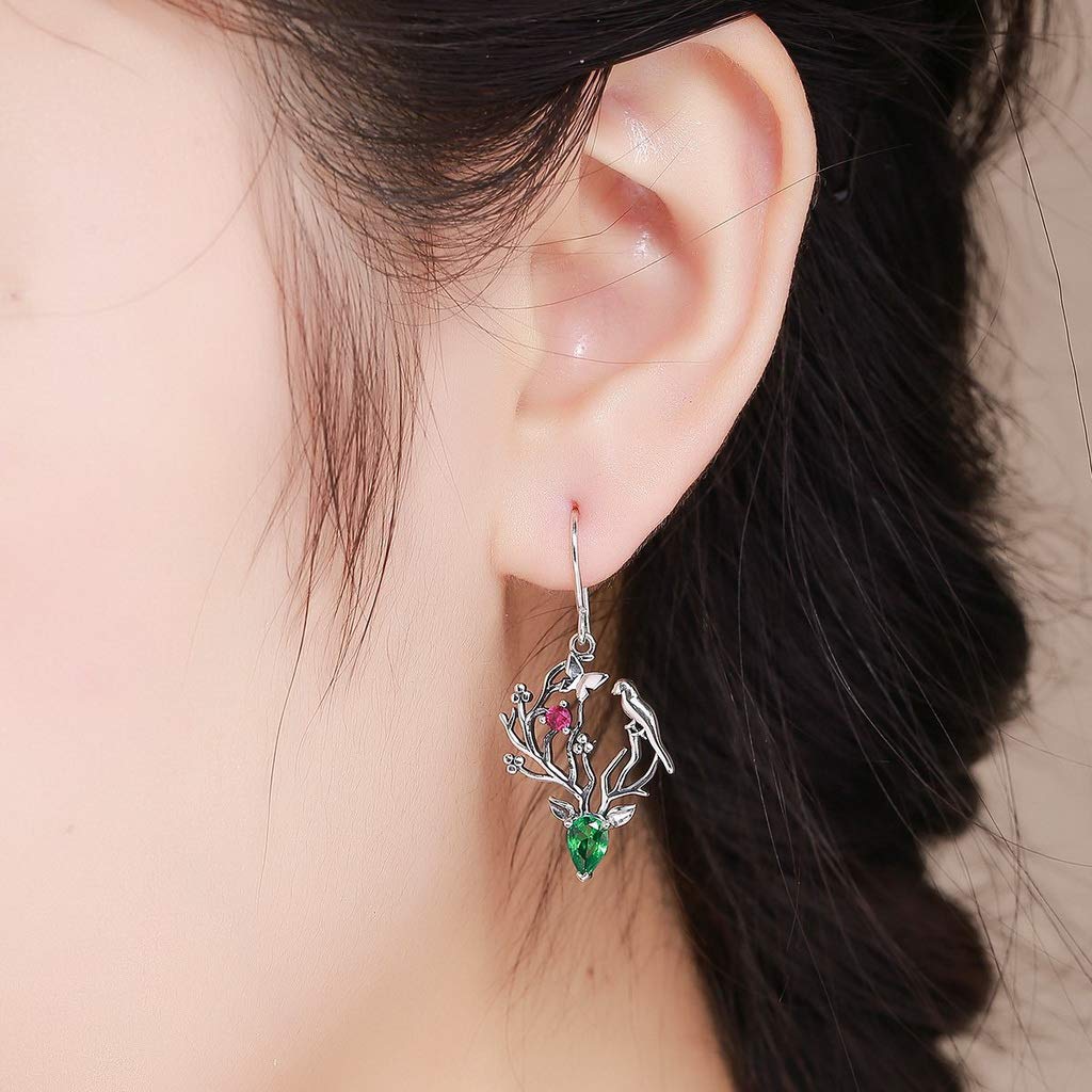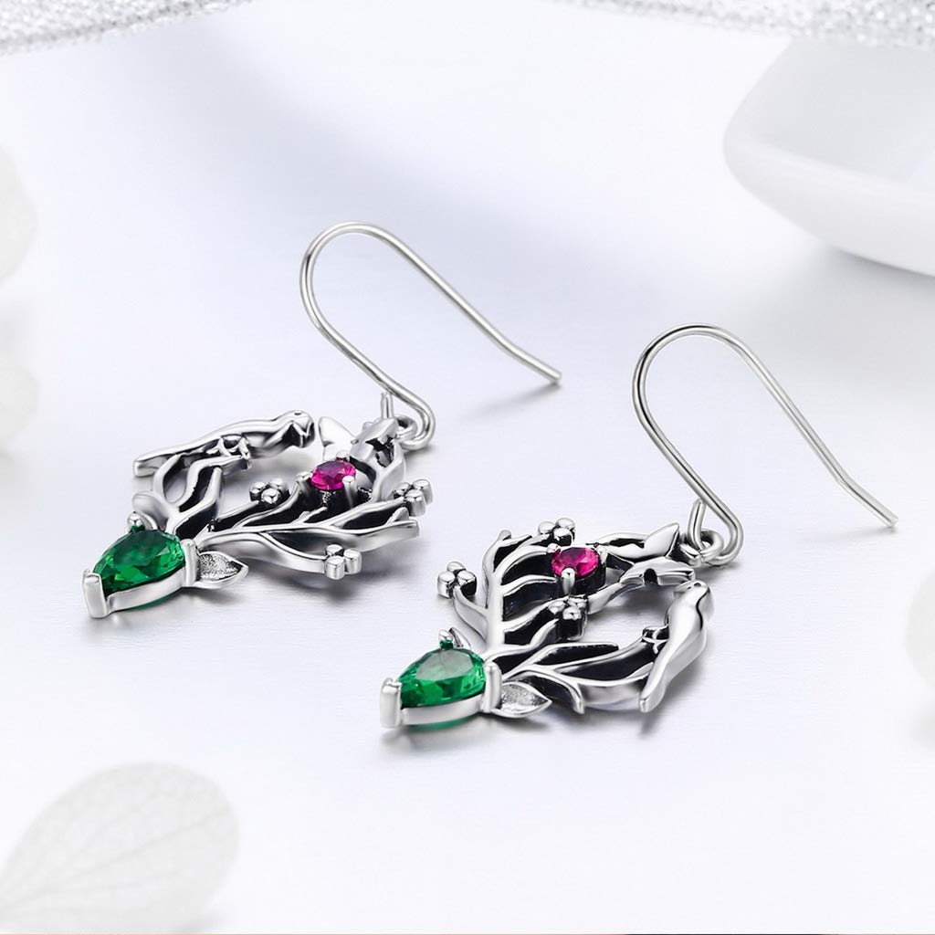 PAHALA 925 Sterling Silver Elk Legend Crystal Tree Leaves Earrings