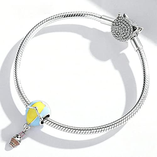 PAHALA 925 Sterling Silver Enamel Colorful Hot Air Balloon Bunny Charm Bead