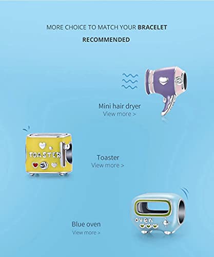 PAHALA 925 Sterling Silver Mini Appliance Enamel Charm Rice Cooker Toaster Blue Oven Hair Dryer Charm Bead
