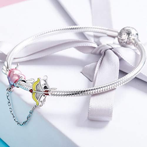 PAHALA 925 Sterling Silver Enamel Romantic Heart Arrow Safety Chain Charm Bead