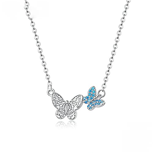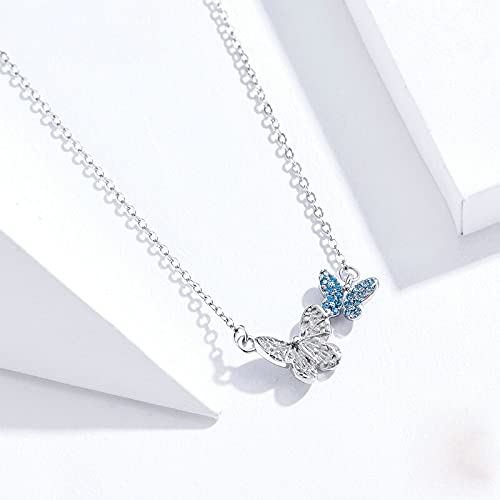 PAHALA 925 Sterling Silver Flying Butterfly Blue Crystals Pendant Wedding Necklace