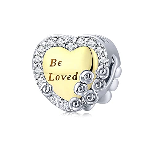 PAHALA 925 Sterling Silver Golden Heart Rose Love Wing Pink Crystal My Sunshine Mom Charm Bead