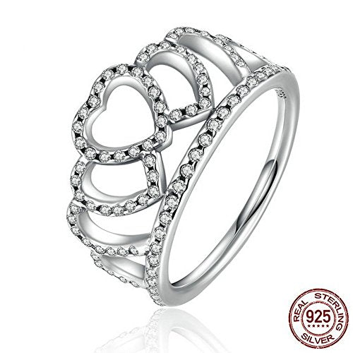 PAHALA 925 Sterling Silver Heart Crown with Crystal Cubic Zirconia Pave Wedding Engagement Band Ring