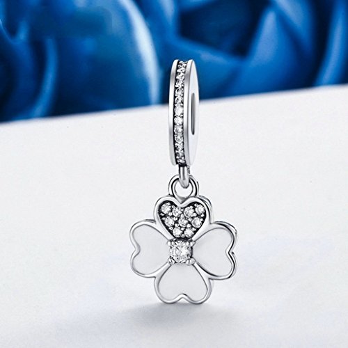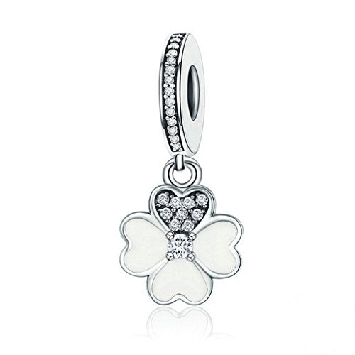 PAHALA 925 Sterling Silver Hearts Clover with Crystals Charms Beads