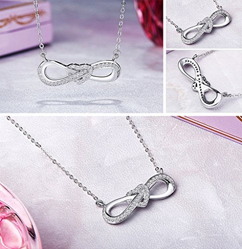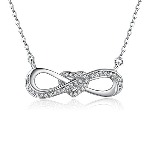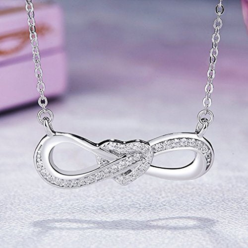 PAHALA 925 Sterling Silver Infinity Love Heart with Crystals Clear CZ Pendant Necklace