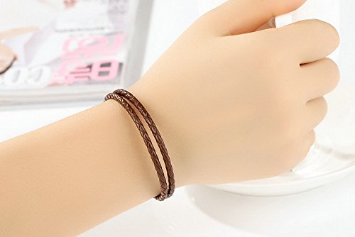 PAHALA 925 Sterling Silver Long 4 Colors Braided Leather Chain Snake Clasp (34, Brown)