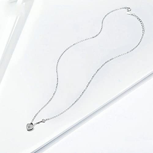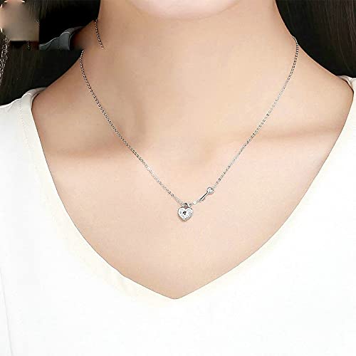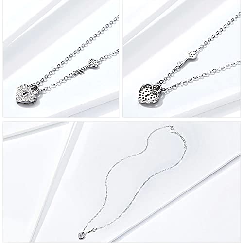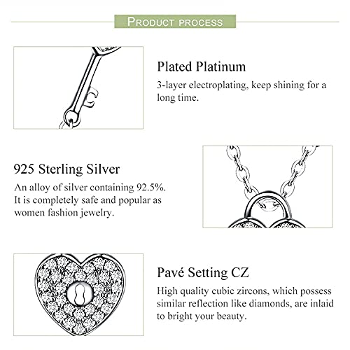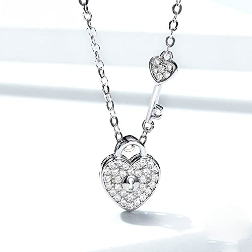 PAHALA 925 Sterling Silver Love Heart Lock Key Crystals Pendant Wedding Necklace