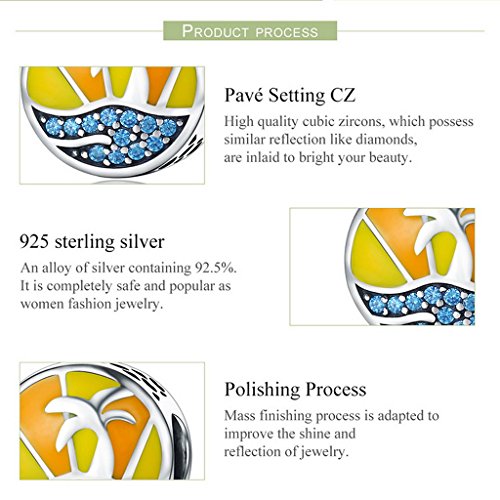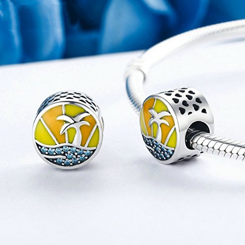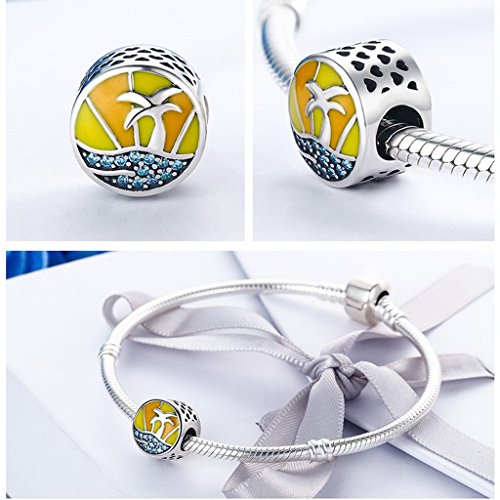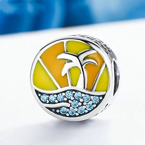 PAHALA 925 Sterling Silver Love Summer Beach with Blue Crystal Charm Bead Fit Bracelet