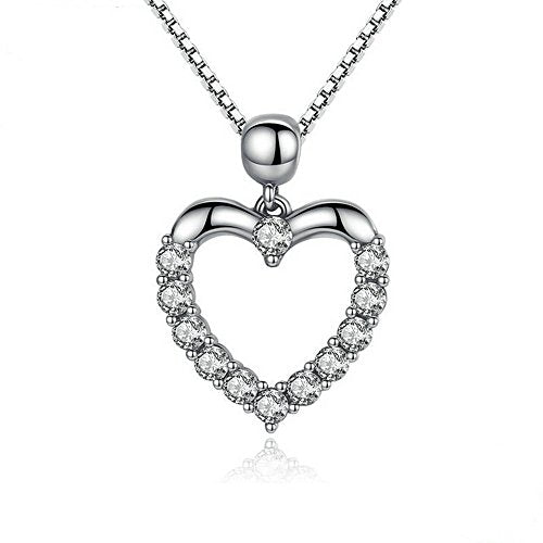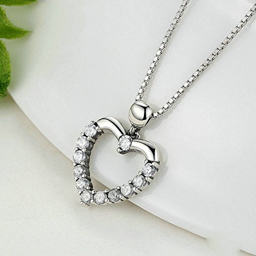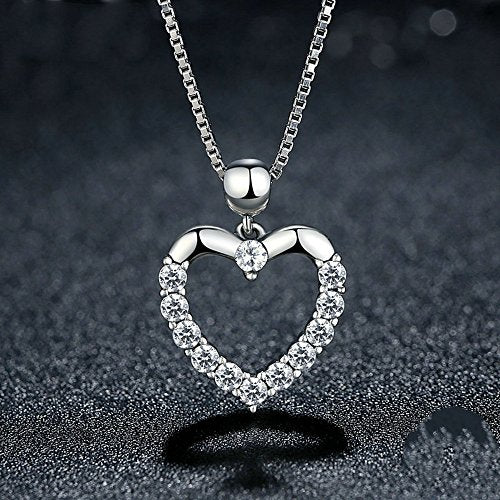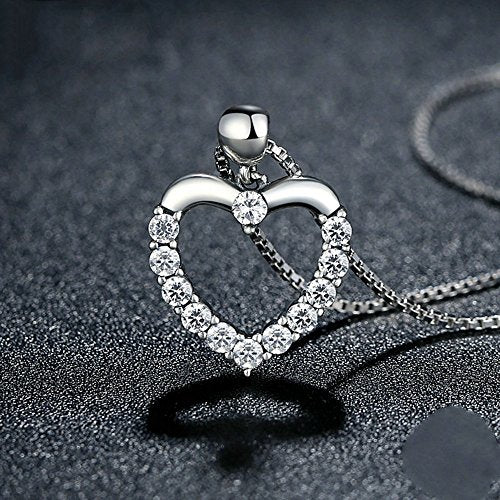 PAHALA 925 Sterling Silver Lovely Heart with Crystals Pendant Necklace
