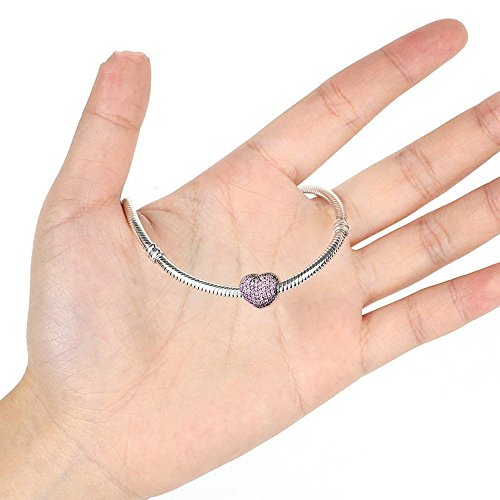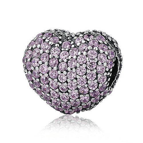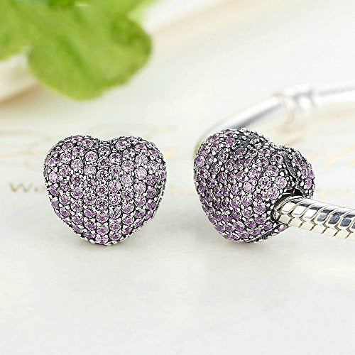 PAHALA 925 Sterling Silver Pink Crystals Heart Charms Fit Bracelets Necklace