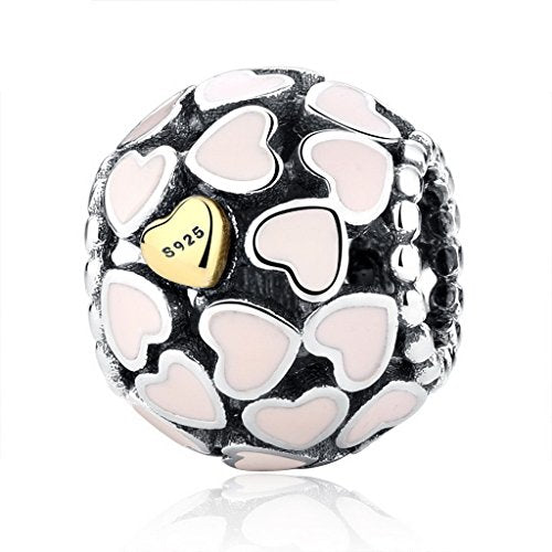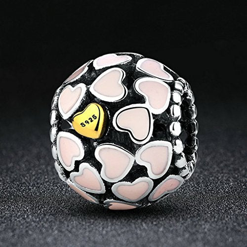 PAHALA 925 Sterling Silver Pink Full Love Enamel Charm Bead